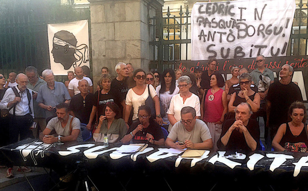 "Amnistia" ou "Basta à a ripressione !" Les banderoles sont toutes déployées, les nerfs aussi et u troppu Stroppia par dessus tout ! Les membres de l'Associu Sulidarità se sont rassemblés hier soir devant la préfecture de région pour réclamer la libération...