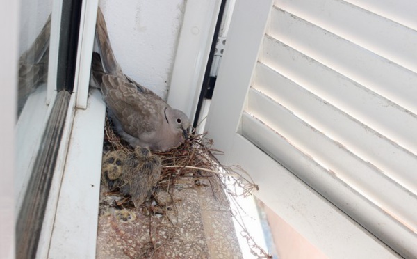 Une tourterelle donne naissance à des petits à la... Casa cumuna de Calvi !
