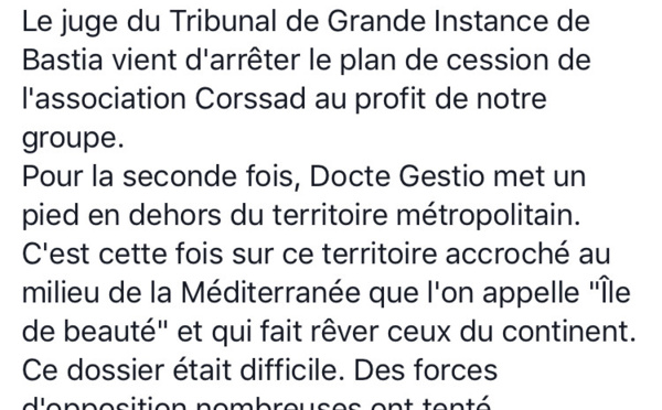 Le STC, sous la signature de Dumè Biaggi, dénonce dans un communiqué l'annonce faite, ce mardi, par DocGestio de la reprise du Corssad alors que la décision judiciaire doit être rendue ce… mercredi à Bastia DocteGestio se prévaut 24 heures avant le rendu...