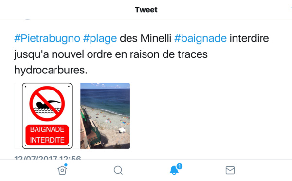 La baignade a été interdite depuis le début de l'après-midi de mercredi sur la plage de Minelli à Ville-di-Pietrabugno. La décision de la municipalité faisait suite à la découverte de traces d'hydrocarbures dans l'eau. En fin de journée l'alerte était levée....