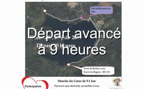 Le dimanche 25 juin sera organisée une "Marche pour le coeur" de 5 km autour du barrage de Codole. Les frais d'engagement seront reversés au profit du Centre Hospitalier Calvi-Balagne pour l'achat d'un écographe cardiaque