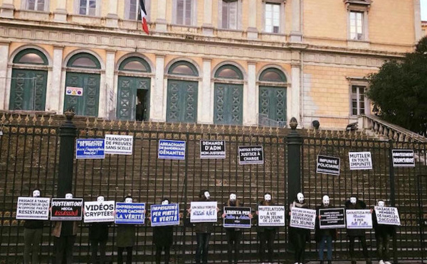 Le collectif GVPN (Ghjutizia è verità per i nostri), qui, mercredi matin a fait passer tous ces messages de façon originale devant le palais de justice de Bastia, a réagi de la sorte au renvoi de l'examen de la requête en nullité dans l'affaire des explosifs...