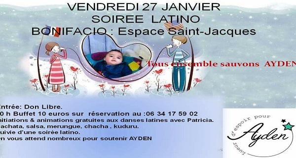 « Lueur d’espoir pour Ayden » et son antenne Corse organise une soirée latino à l’espace St Jacques de Bonifaccio. Des dons libres, un buffet à 10 euros et sur réservation au 06 34 17 59 02 pour lui venir en aide ainsi qu’à ses jeunes et courageux parents. Ce...