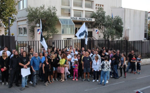 Rassemblement de soutien à trois étudiants nationalistes corses devant la sous-préfecture de Calvi