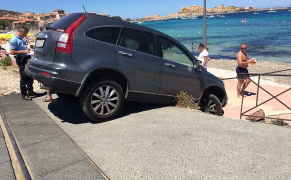 Image insolite que celle que nous devons à notre ami Jean-Pierre Santini, prise aujourd'hui à L'Ile-Rousse où un véhicule 4X4 s'est retrouvé dans une situation pour le moins inconfortable