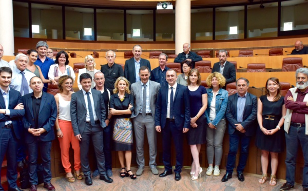 Gilles Siméoni, président du Conseil exécutif, Marie-Antoinette Maupertuis, présidente de l’ATC, Jean-Christophe Angelini, président de l’ADEC et Jean-Félix Acquaviva, président de l’OTC ont lancé le Comité de Pilotage du Schéma de Développement Economique,...