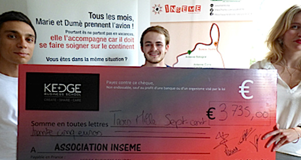 Récemment, les étudiants de 1ère année de la Kedge Business School de Bastia, accompagnés de leur professeur Elisa Allari, sont venus dans les locaux d’Inseme à Bastia remettre un chèque de 3 735 € ! Cette somme correspond à la recette de leur journée au...