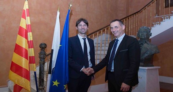 Gilles Simeoni reçu à Barcelone par Carles Puigdemont, président de la Generalitat de Catalunya