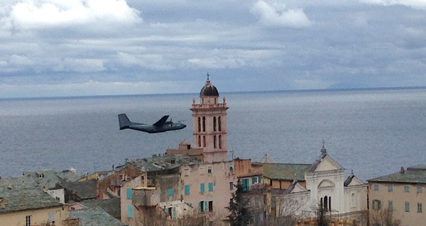 Le clocher de la cathédrale Sainte Marie n'a sans doute jamais vu de Transall de si près. Mercredi, peu après 15 heures, un appareil venu d'on ne sait où a tourné autour du clocher puis, dans un demi-tour majestueux, a repris le cours de son vol vers le Sud...