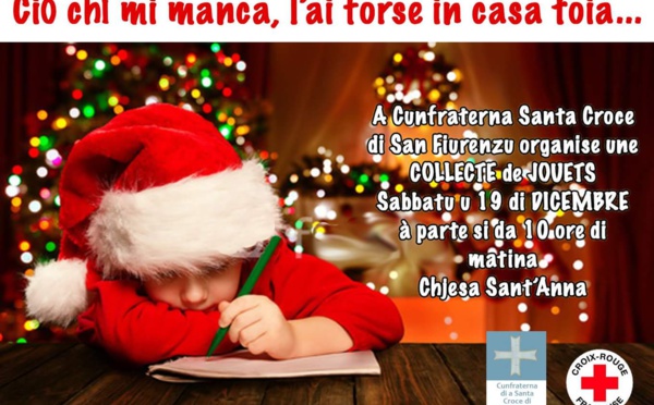 Cum’è tutti l’anni à i tempi natalecci, a Cunfraterna di a Santa Croce di San Fiurenzu si move à prò di a Croce Rossa di Corsica. I cunfratelli v’aspetteranu sabbatu u 19 à parte si da 10 ore di matina di fronte à a chjesa paruchjale di Sant’Anna, i bisogni...
