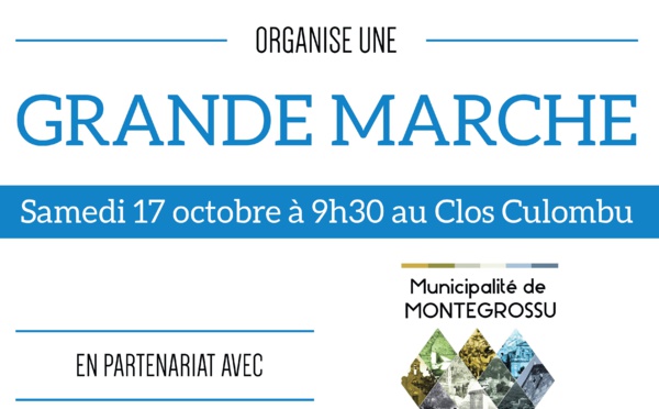 A l'initiative du Comité Communal d'Action Sociale de Lumio, en partenariat avec la commune de Montegrossu et son CCAS, sera organisé le samedi 17 octobre la Grande Marche Bleue. Rendez-vous pour tous les marcheurs à 9h30 au Clos Colombu