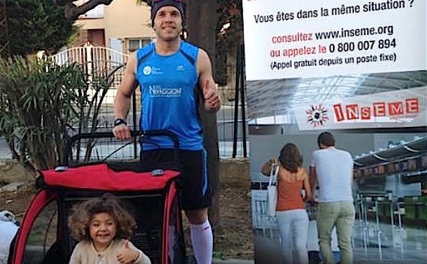 Inseme : Jacques Secondi, avec sa fille dans une poussette, au départ du Marathon d‘Ajaccio
