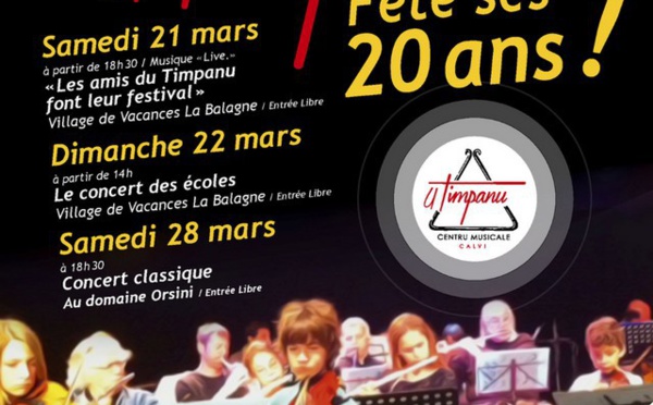 1995 - 2015: 20 ans, c'est l'âge de l'école de musique U Timpanu de Calvi. Pour fêter cet événement, les trois rendez-vous des 21, 22 et 28 mars vont marquer l'histoire de l'école