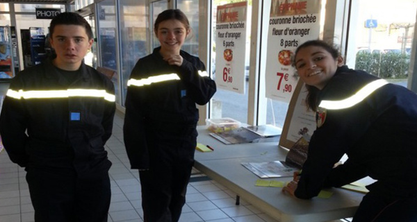 Les jeunes sapeurs-pompiers volontaires de Calvi vendent le calendrier et billets de tombola