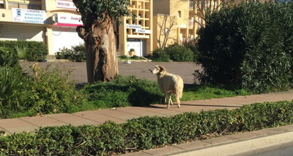Image insolite que celle fixée ce jeudi en tout début d'après-midi de ce bélier se promenant sur un trottoir, en bordure de la Route Nationale à l'entrée de Calvi. Difficile pour l'heure de dire si ce bélier était à la recherche de la brebis égarée ou...
