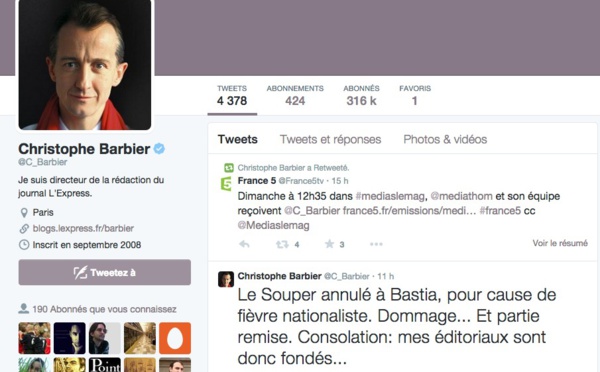 Christophe Barbier ne viendra donc pas à Bastia ce samedi. Les organisateurs de Arte Mare qui expliquent leur décision par ailleurs, ont différé au mois de Mai prochain la représentation du "Souper" où le directeur de la rédaction de "L'Express" devient...