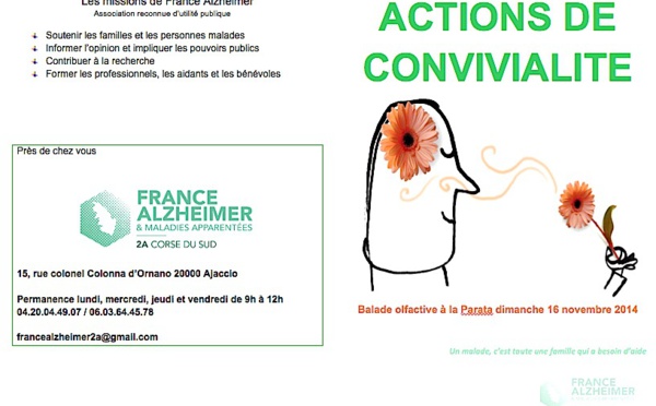 En ce mois de novembre, l’association France Alzheimer Corse-du-Sud organise deux évènements en partenariat avec Marc Chiappe, guide botaniste et Véronique Costantino, docteur en neurosciences. Il s’agit une nouvelle fois de promouvoir les missions de...