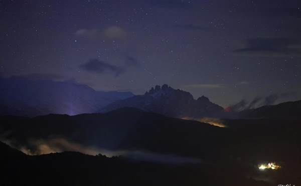 Sous le ciel constellé, les aiguilles de Bavella blanchies par un bref épisode neigeux se découpent dans la nuit. Vue depuis la punta de Carbini, la montagne corse retrouve, le temps de quelques heures, un visage d’hiver, silencieux et minéral qu'a su saisir...