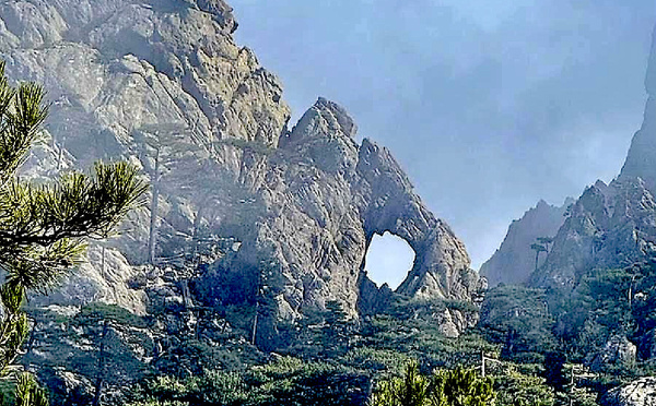 Au cœur du massif de Bavella, l’arche rocheuse de U Cumpuleddu, dans le secteur de Calanca Murata, se détache dans la brume matinale. Sculptée par l’érosion au fil des millénaires, cette curiosité naturelle domine les pins laricio et rappelle la puissance du...