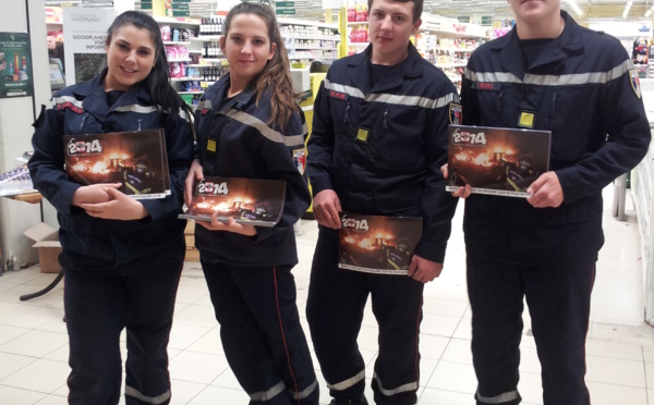 Les jeunes sapeurs pompiers de Calvi en formation, ont consacré une de leurs matinées pour vendre dans les deux grandes surfaces de Calvi le traditionnel calendrier de la caserne