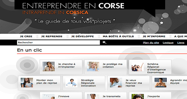 Information sur la création d'entreprises, reprise et développement, orientation et structures d'accompagnement, outillage et feuille de route, le site "Entreprendre en Corse" s'articule autour de ces axes. Il s'agit d'un authentique guide de tous les projets...