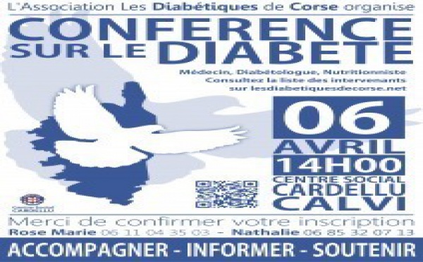 Samedi 6 Avril, une conférence sur le diabète aura lieu au centre social Cardellu à Calvi à partir de 14h00. Des intervenants locaux, spécialiste de cette maladie seront présents, une présentation de l'association, ainsi que ses objectifs seront détaillés au...