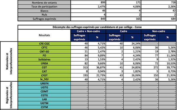 Les résultats de l’élection 2024 des syndicats représentant les salariés des très petites entreprises et des particuliers employeurs, pour la région Corse, ont été proclamés ce vendredi 20 décembre 2024 par la commission régionale des opérations de vote et en...