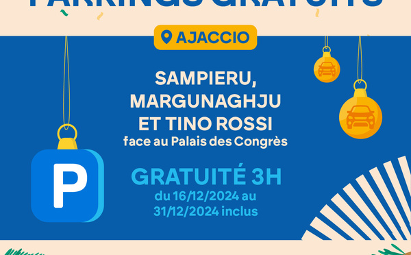 À l’approche des fêtes de fin d’année, la Chambre de Commerce et d’Industrie (CCI) de Corse soutient les commerçants du centre-ville d’Ajaccio en offrant trois heures de stationnement gratuit dans plusieurs parkings du 16 au 31 décembre. Pour dynamiser les...