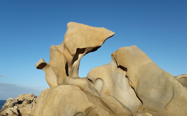L'action combinée du vent et de la mer a donné cette architecture particulière à de la pointe de Campomoro. Les rochers ainsi sculptés prennent de formes étonnantes avec des teintes allant du gris anthracite au marron, comme a voulu le rappeler avec cette...