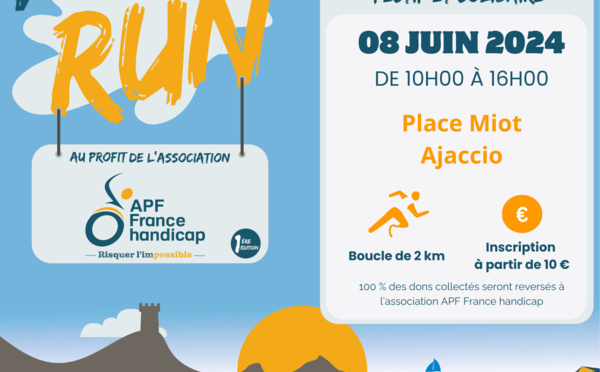 L’association des paralysés France handicap (APF France handicap), organise une course solidaire le samedi 8 juin sur la place Miot, à Ajaccio. Objectif : sensibiliser la population corse au handicap. À l’horizon des Jeux Olympiques et Paralympiques de Paris...
