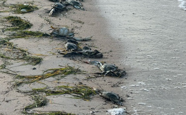 Quelle est l'origine de l'échouage massif de crabes bleus sur une plage de Lecci ?