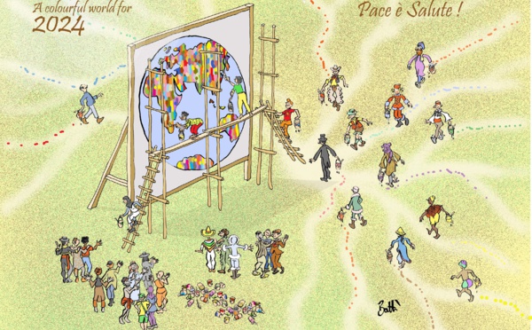 Le dessin de Battì : ""A colorful world for 2024", "Pace è salute"