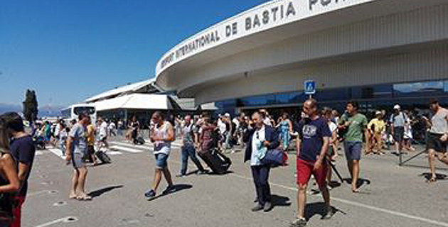 Passagers en attente et personnels ont été ainsi été rassemblés devant l'aérogare.