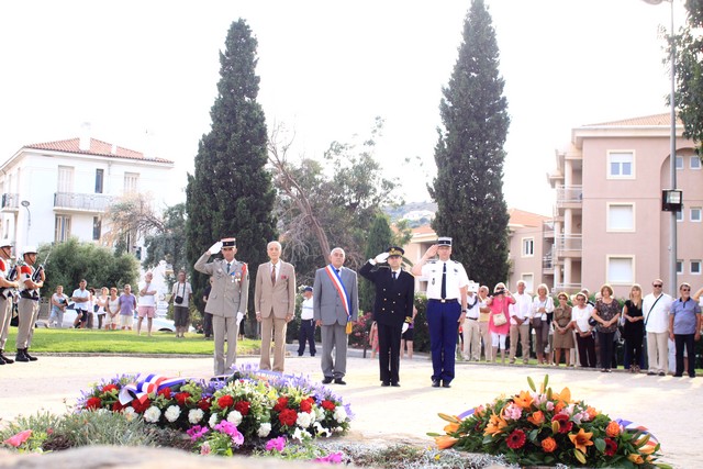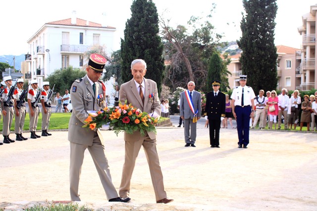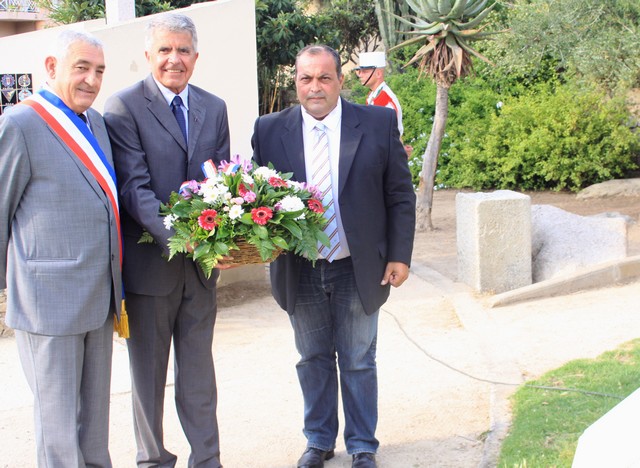 Jean-Jo Allegrini-Simonetti et Daniel Thibaudin président des anciens combattants et victimes de guerre de L’Ile-Rousse pour la municipalité de L’Ile-Rousse, Christian Guyard , sous-préfet de Calvi et le lieutenant-colonel Bertrand Morel, officier supérieur du 2e REP de Calvi déposaient une gerbe, avant que ne retentisse la sonnerie aux morts et l’hymne national.