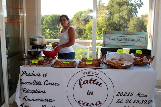 Au hasard des stands, il y a Haudrey de "Fattu in casa" qui comme son enseigne l'indique utilise des produits locaux pour nous proposer des beignets de courgettes, des tourtes, des Curconi et autres spécialités "Maison". Installée à Muro, elle organise aussi des banquets, mariages et autres réceptions.