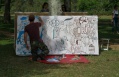 Les artistes Corses sont venus peindre l'Irlande ce week-end pour décorer de multiples couleurs les toiles des grands panneaux acoustiques (2.50x1.25m) qui décoreront la salle des concerts dans l’ancien pénitencier de Coti. Une activité ouverte aux professionnels, comme aux amateurs de tout âge. Ces panneaux pourront par la suite orner vos intérieurs puisqu’ils seront mis aux enchères aveugles lors du Festival Kulturarte qui aura lieu dans une dizaine de jours.