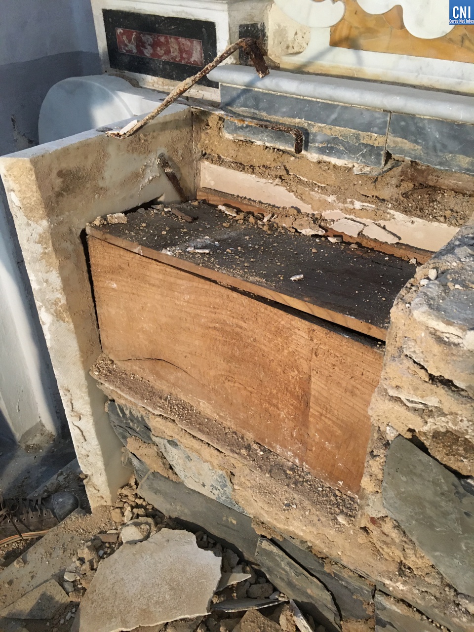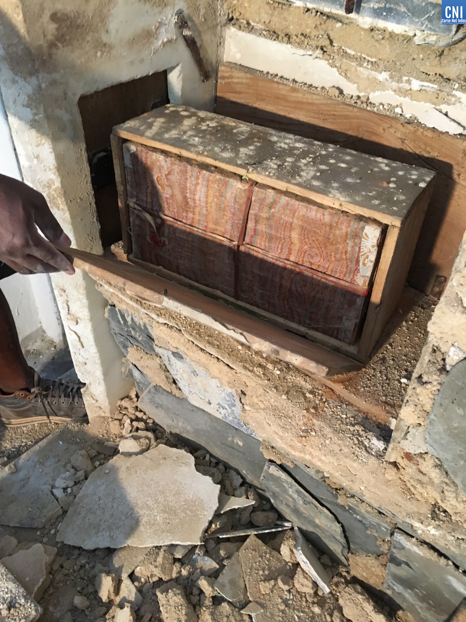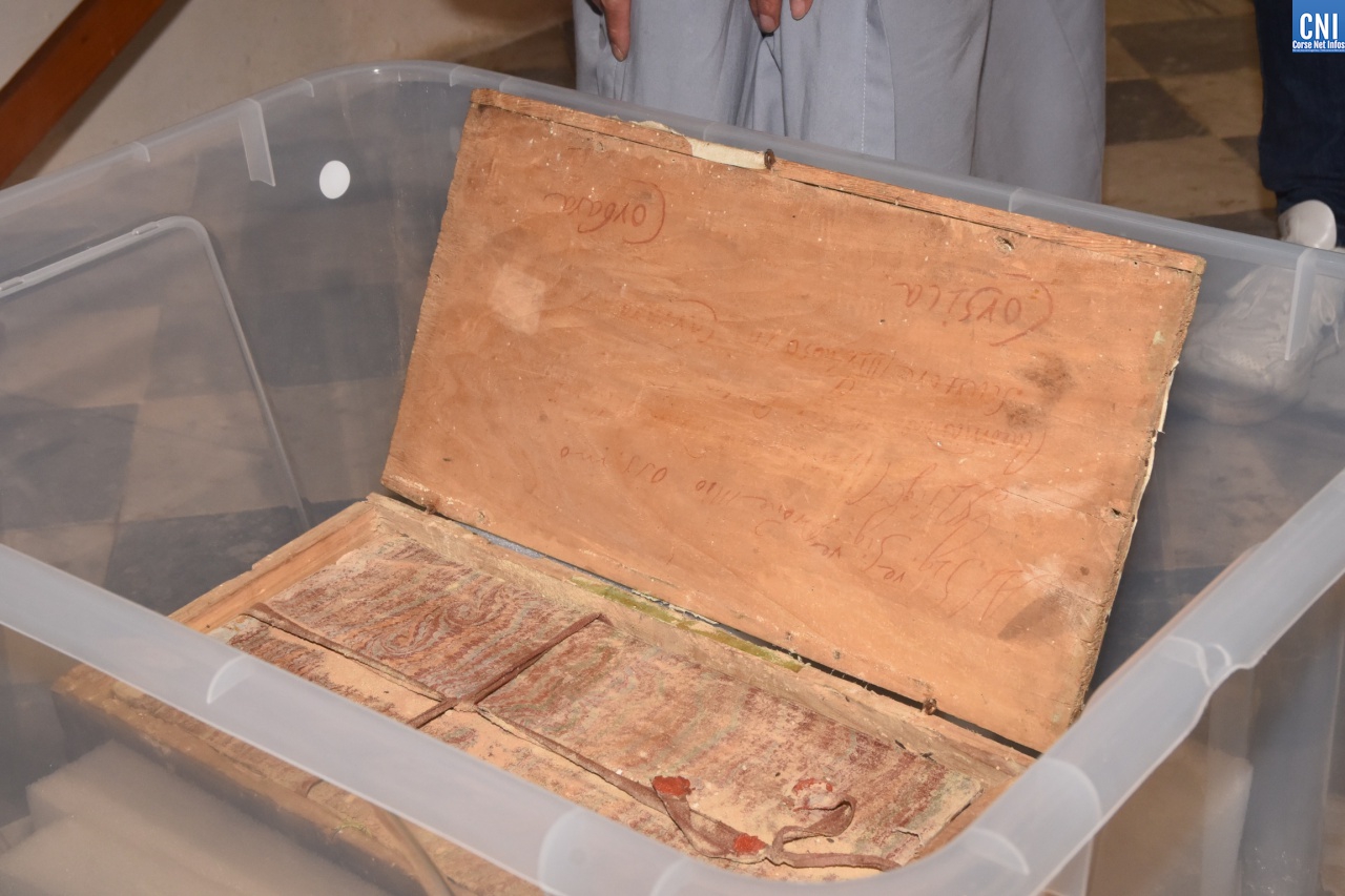 " Nous avons retrouvé un coffre reliquaire qui renfermerait les reliques de Saint Fortuné. L'autel date de 1750, elles ont probablement été déposées lors de sa construction. C'est assez rare de retrouver des reliques dans leur lieu d'origine. Pour ce cas de figure, c'est véritablement quelques chose de très homogène. Elles étaient accessible par une porte latérale mais il semble que personne ne l'ait connue ouverte. C'est donc peut-être la première fois depuis plus de 200 que le coffre à été revu".
