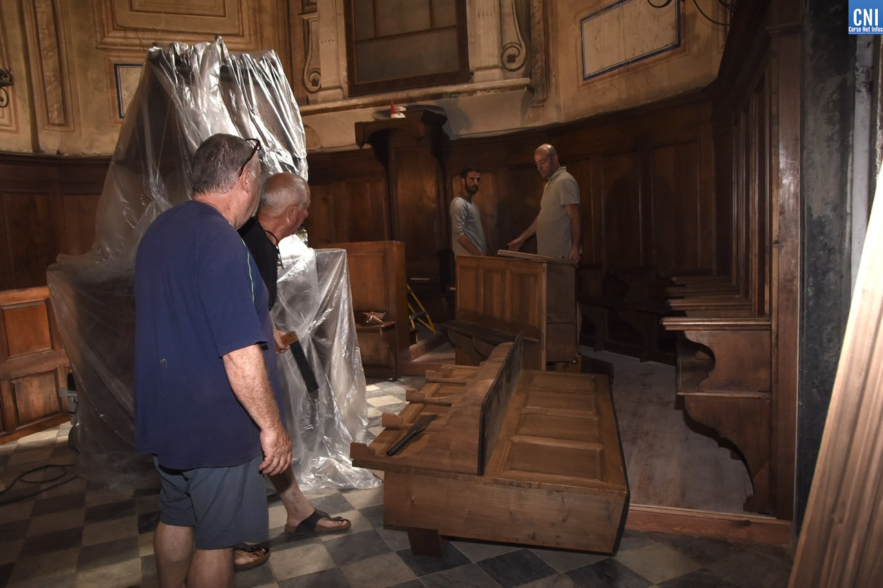 Un travail de minutie extrême pour revenir à l'état d'origine des œuvres. Nous avons restitué certains éléments disparus, que nous avons pu reconstituer fidèlement. Une opération comme celle-ci se déroule après une importante étude documentaire préalable. L'œuvre en marbre blanc de Carrare pour la clôture du chœur, avait été réalisée par le sculpteur italien Pietro Cortesi au XVIII siècle. Les stalles, elles, sont des panneaux en noyer et pin Lariccio pour l'estrade. Après un inventaire précis, nous avons restauré ce qui pouvait l'être et remplacé ce qui était en trop mauvais état".