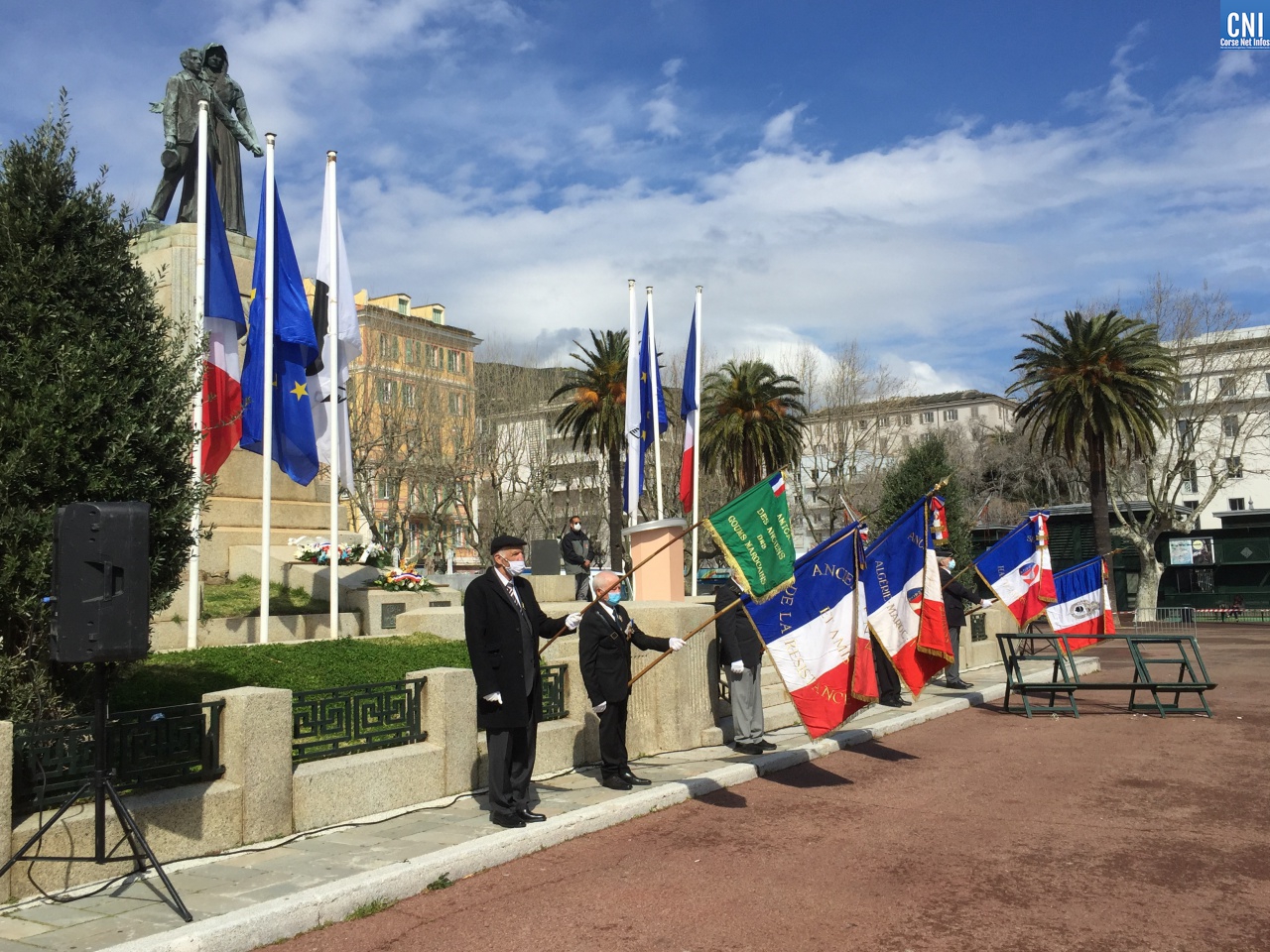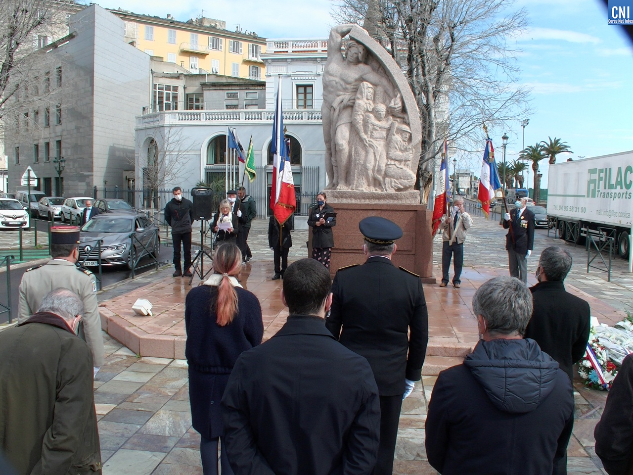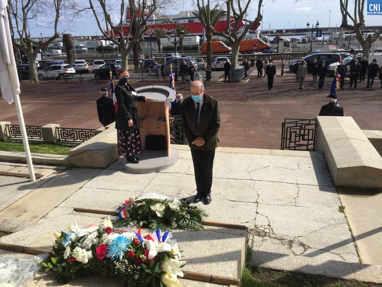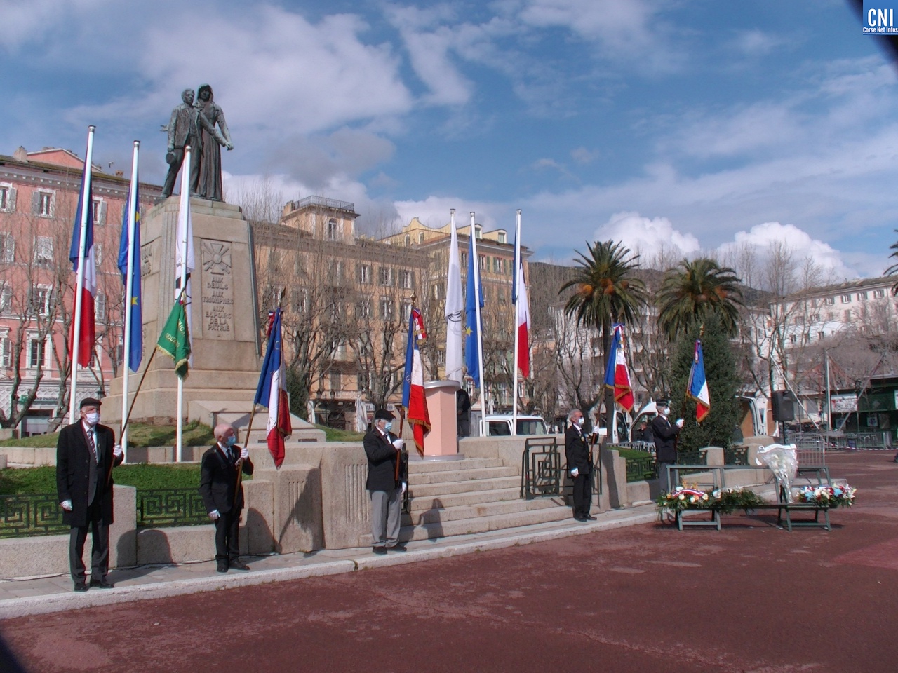 Là aussi le préfet de la Haute-Corse était entouré de nombreuses personnalités civiles et militaires dont des anciens combattants. Un premier discours a été fait par Jean Raffi, président et délégué de la FNACA, Fédération Nationale des Anciens Combattants en Algérie, Maroc et Tunisie : un texte de Serge Drouot, président de la Commission Mémoire-Histoire*. Le préfet a ensuite lu le message de Geneviève Darrieussecq, ministre déléguée auprès de la ministre des Armées, chargée de la Mémoire et des Anciens combattants (voir ci-joint).