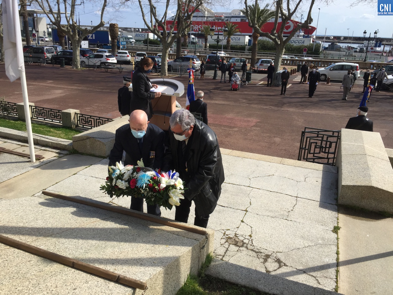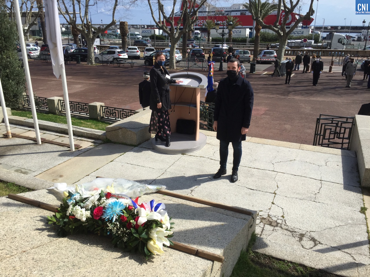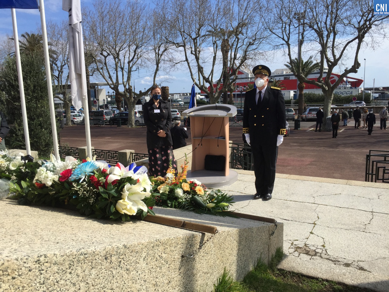 Là aussi le préfet de la Haute-Corse était entouré de nombreuses personnalités civiles et militaires dont des anciens combattants. Un premier discours a été fait par Jean Raffi, président et délégué de la FNACA, Fédération Nationale des Anciens Combattants en Algérie, Maroc et Tunisie : un texte de Serge Drouot, président de la Commission Mémoire-Histoire*. Le préfet a ensuite lu le message de Geneviève Darrieussecq, ministre déléguée auprès de la ministre des Armées, chargée de la Mémoire et des Anciens combattants (voir ci-joint).