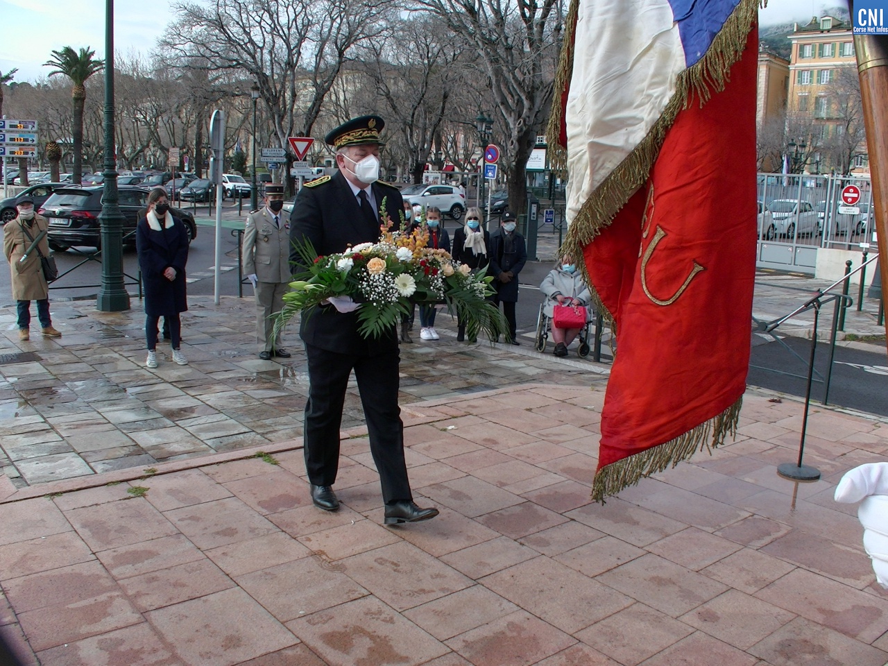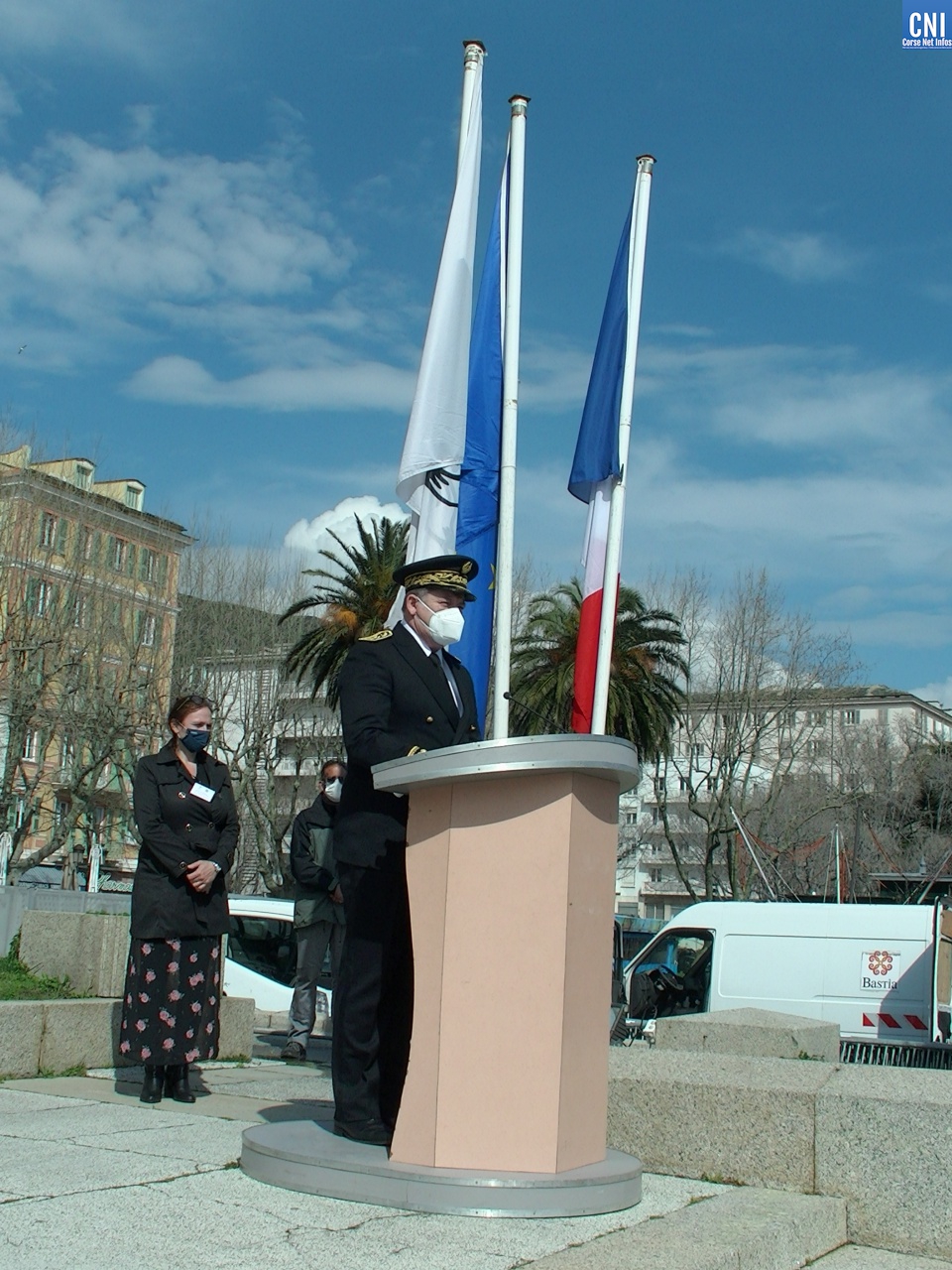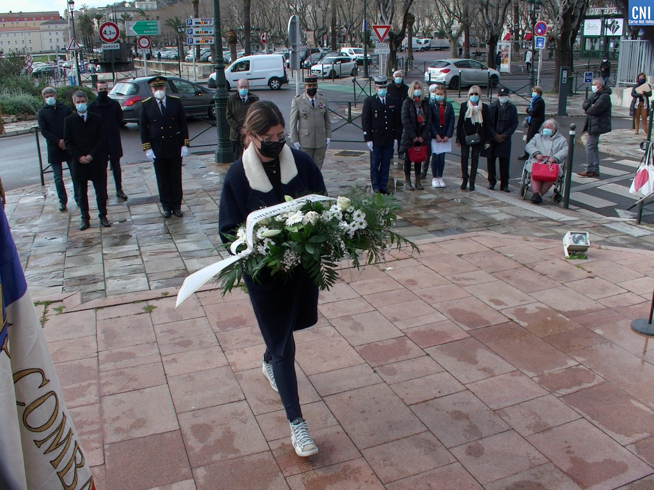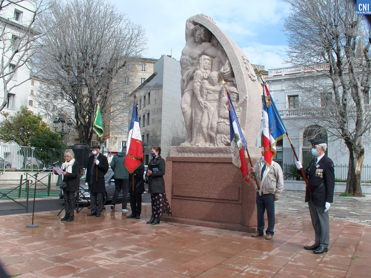 Là aussi le préfet de la Haute-Corse était entouré de nombreuses personnalités civiles et militaires dont des anciens combattants. Un premier discours a été fait par Jean Raffi, président et délégué de la FNACA, Fédération Nationale des Anciens Combattants en Algérie, Maroc et Tunisie : un texte de Serge Drouot, président de la Commission Mémoire-Histoire*. Le préfet a ensuite lu le message de Geneviève Darrieussecq, ministre déléguée auprès de la ministre des Armées, chargée de la Mémoire et des Anciens combattants (voir ci-joint).