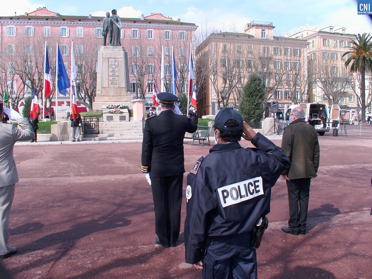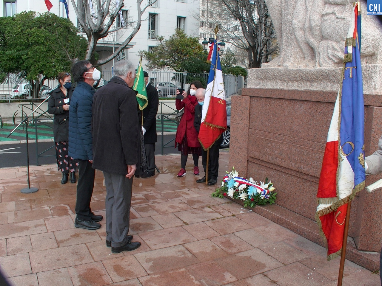 A 10 heures, devant le monument de la Résistance, rond-point Nogues à Bastia, c’est un bel hommage qui a été rendu au grand résistant corse Fred Scamaroni, mort à Ajaccio le 19 mars 1943. Celui qu’on appelait le «Jean Moulin corse » avait permis l’unification des réseaux de résistance de l’île de Beauté. Arrêté puis torturé par la police politique italienne qui à cette époque dominait la Corse, il mourra en héros sans parler. De nombreuses personnalités civiles et militaires avaient pris place aux cotés du préfet : Clément Profizi, nouveau délégué général au souvenir français pour la région corse, Sixte Ugolini, président de l’Association ANACR 2B (Association Nationale des Anciens combattants et Amis de la Résistance), Alex De Zerbi et Philippe Peretti, adjoints à la mairie de Bastia, Lauda Guidicelli représentant la CdC. Représenté aussi le député de la 1ère circonscription de la Haute-Corse Michel Castellani, Valérie Zettor, directrice départementale de la Sécurité publique de la Haute-Corse et des membres de la famille Scamaroni, le nièce, le neveu et les petites nièces du résistant. Après les discours et la lecture d’un poème écrit par Fred Scamaroni, 6 gerbes ont été déposées au pied du monument.