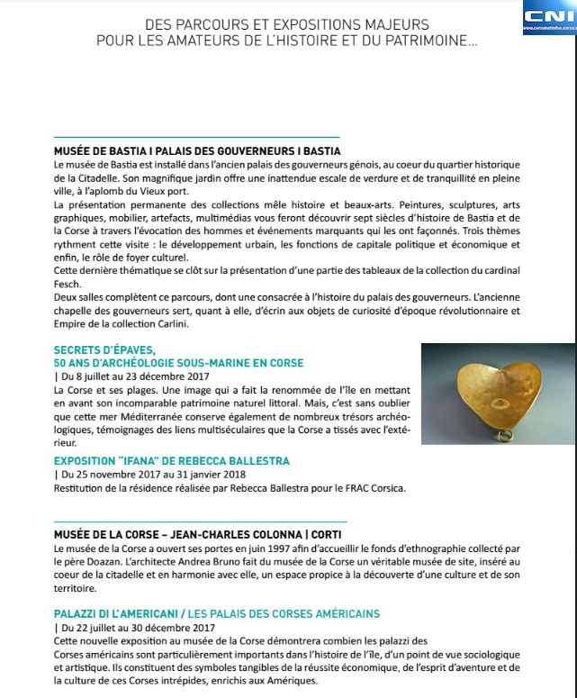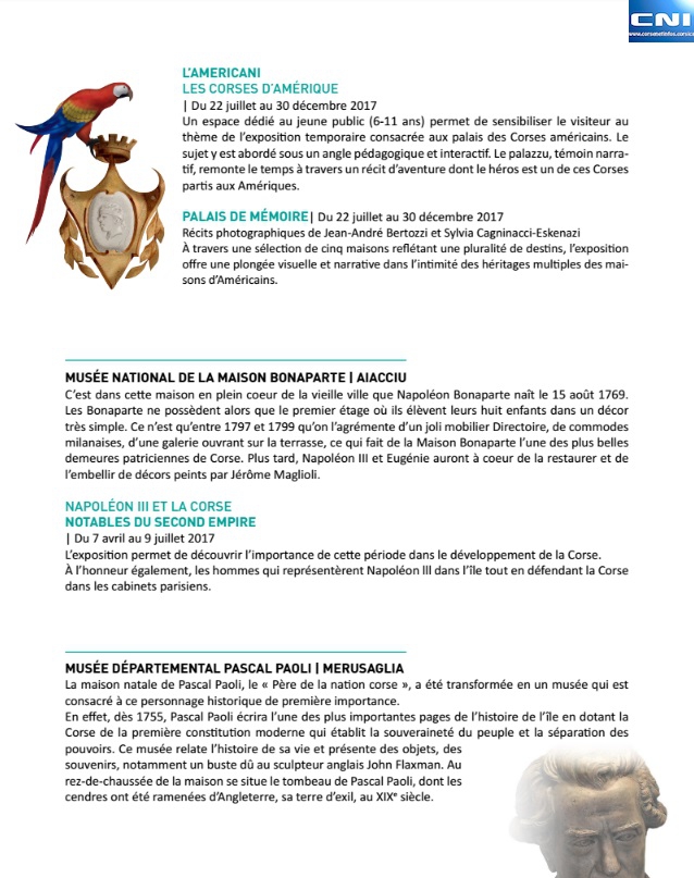 • Enfin, à la Maison Bonaparte au cœur du vieil Aiacciu, à travers l’exposition temporaire intitulée « Napoléon III et la Corse – Notables du Second Empire », l’éclairage est mis sur la sollicitude impériale et l’implication des élites insulaires sous ce second empire et dans l’avenir de l’île.