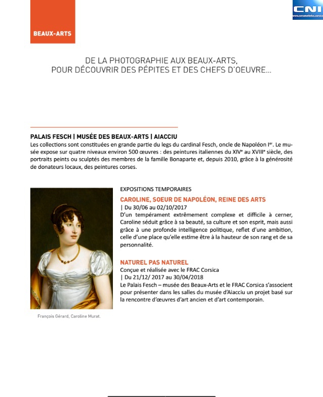 • L’exposition « Caroline, sœur de Napoléon, Reine des Arts » au Palais Fesch – Musée des Beaux-Arts montre tous les aspects de la personnalité complexe et attachante de Caroline, ses sublimes collections d’œuvres et objets d’arts et sa place au sein de cette famille prestigieuse des Bonaparte.