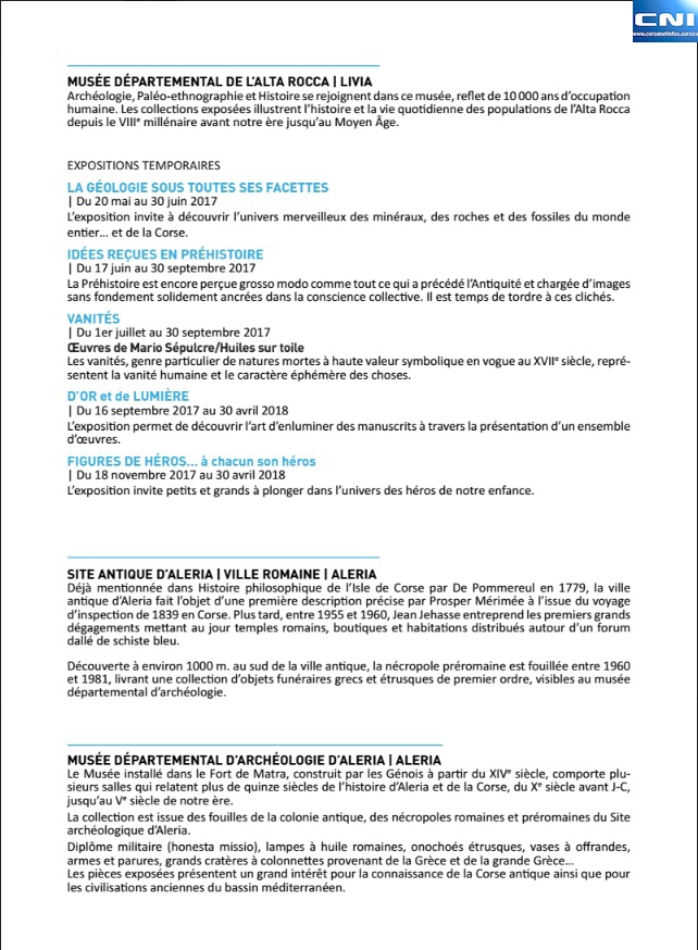 Forte de sa compétence dans le domaine des musées en matière de création, de gestion et de développement, elle soutient et accompagne ces institutions culturelles dans leur structuration et leur mise en réseau, participe également aux activités d’exposition, de publication et de médiation des musées auprès de tous les publics, et soutient l’activité de conservation et de restauration des collections publiques corses. Mais c’est aussi la découverte d’une offre culturelle riche et variée proposée notamment par les dix musées, situés sur son territoire et le FRAC Corsica, qui vous offrent à voir, tout au long de la saison estivale, au-delà de leurs collections permanentes, un panel d’expositions temporaires...