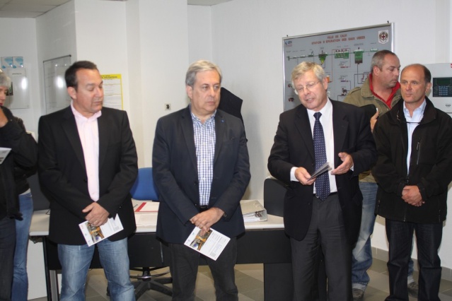 Dans la salle d'opération de la station tour à tour, Hugo Bardi et Jean-Pierre Buchoud ont pris la parole pour remercier le maire de la commune et son conseil municipal et dire combien ils étaient fiers de présenter le résultat de cette extension de la station, avec ce procédé de traitement biologique. Ange Santini prenait à son tour la parole pour saluer la direction de la société OTV, Paul Beverraggi et l'ensemble du personnel de la station: " Ces travaux de modernisation de l'usine de traitement des eaux usées que nous venons de réaliser étaient indispensables pour notre station balnéaire qui passe de 5 000 à 50 000 habitants en saison touristique. Aujourd'hui, je me réjouis de cette modernisation qui nous met à la pointe de la technologie avec un traitement biologique d'affinage"