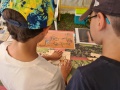 Sur le champ de foire, à quelques mètres de l’église de la Canonica, 16 ateliers reçoivent la visite des enfants. Taille de silex, peinture de mosaïque, puzzle d’urbaniste romain, tamisage d’une terre de site archéologique. Les dénicheurs de trésors en herbe mettent la main à la pâte et se plongent dans la peau d’un archéologue.