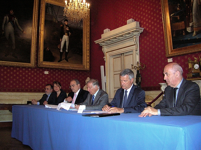 Le Président de l'Exécutif Paul Giacobbi, le Maire d'Ajaccio Simon Renucci et le Préfet de Corse Patrick Strzoda, ont officialisé la signature de la convention du label. (Photo : Yannis-Christophe Garcia)