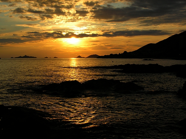 Les Iles Sanguinaires (ici à l'horizon) dans le soleil couchant, font partie des six sites remarquables de la Cité Impériale classés par le réseau européen Natura 2000. (Photo : Yannis-Christophe Garcia)