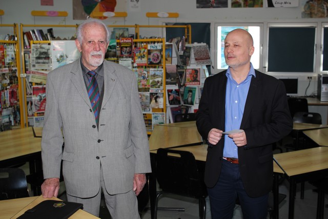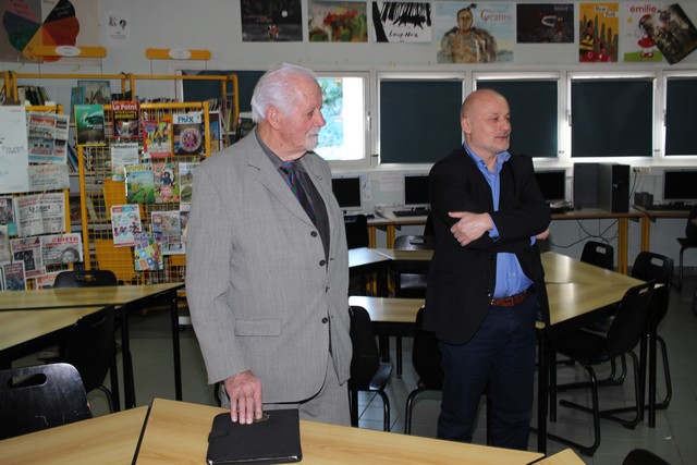 Avant de remettre le chèque de 2000€ au chef d'établissement, Paul-Dominique Rossi, président de la section départementale de la Fédération Nationale André Maginot s'adressait aux élèves: